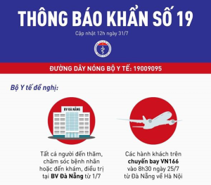 THÔNG BÁO KHẨN SỐ 19: Bộ Y tế tìm người trên chuyến bay Đà Nẵng – Hà Nội sáng 25/7