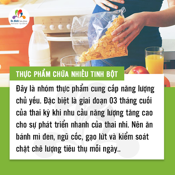 Đây là nhóm thực phẩm cung cấp năng lượng chủ yếu nhất. Đặc biệt là giai đoạn 03 tháng cuối của thai kỳ khi nhu cầu năng lượng tăng cao cho sự phát triển nhanh của thai nhi.