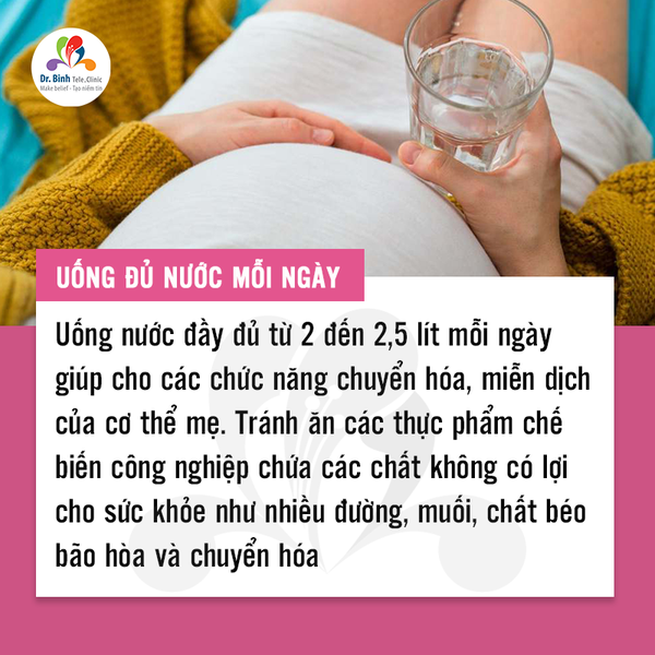 3. Uống nước đầy đủ từ 2 đến 2,5 lít mỗi ngày giúp cho các chức năng chuyển hóa, miễn dịch của cơ thể mẹ.