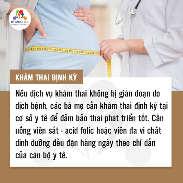 4. Nếu dịch vụ khám thai không bị gián đoạn do dịch bệnh, các bà mẹ cần khám thai định kỳ tại cơ sở y tế để đảm bảo thai phát triển tốt. Cần uống viên sắt – acid folic hoặc viên đa vi chất dinh dưỡng đều đặn hàng ngày theo chỉ dẫn của cán bộ y tế.