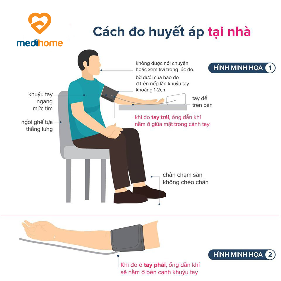 - Lần đầu đo huyết áp nên đo ở cả 2 bên cánh tay, bên nào có chỉ số huyết áp cao hơn sẽ dùng để theo dõi về sau.