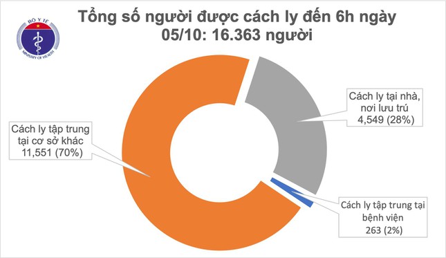 Số người cách ly: Tổng số người tiếp xúc gần và nhập cảnh từ vùng dịch đang được theo dõi sức khỏe (cách ly): 16.363, trong đó: