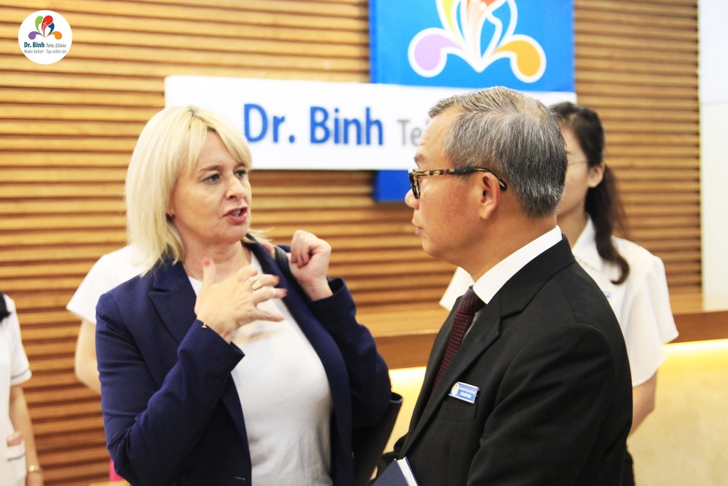 Trong buổi tiếp, đại diện của Reinsurance Group of America – RGA: Ms. Emma Wilkins và Mr. Steve Who rất quan tâm tới năng lực của Phòng khám đa khoa Dr. Binh Tele_Clinic về: cơ sở hạ tầng, chất lượng chuyên môn y bác sĩ, các lĩnh vực hoạt động chính của phòng khám, các hoạt động đưa đón bệnh nhận đi điều trị tại nước ngoài về các bệnh lý Ung thư, bệnh tim mạch, bệnh về thần kinh, mức chi phí trung bình cho các ca điều trị đã thực hiện, quy trình đưa bệnh nhân đi điều trị tại nước ngoài và theo dõi sau khi kết thúc điều trị,…để đáp ứng được những tiêu chuẩn hợp tác.