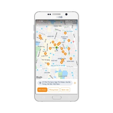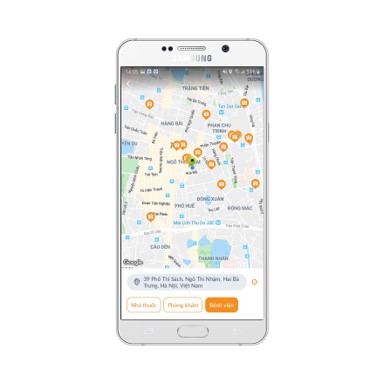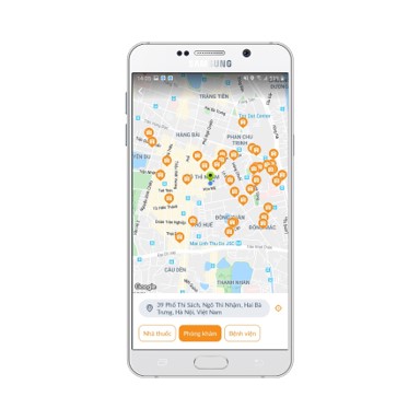 Để tìm cơ sở y tế gần, người dùng nhấn vào “Tìm nhà thuốc gần bạn” sẽ hiển thị toàn bộ cơ sở y tế gần bạn