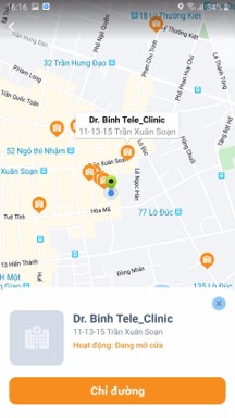 Để tìm đường đến cơ sở y tế đó, người dùng nhấn vào nút “Chỉ đường” sẽ hiển thị bản đồ chỉ đường