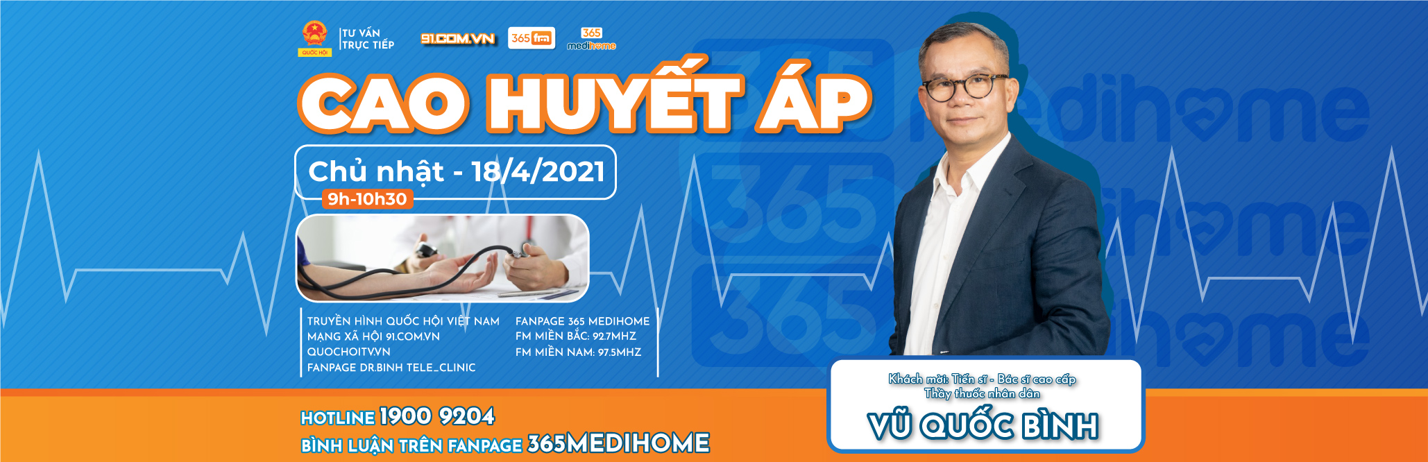 Đây là chương trình tư vấn sức khỏe miễn phí của Phòng khám đa khoa online 365 Medihome phối hợp cùng Đài truyền hình Quốc hội Việt Nam thực hiện, chương trình phát sóng vào hồi 09h – 10h30 chủ nhật ngày 18/04/2021. Mời quý khán thính giả nhanh tay gửi câu hỏi về cho chúng tôi qua hotline 19009204 nhánh 1 hoặc gửi câu hỏi cho BS VŨ QUỐC BÌNH qua fanpage Phòng khám đa khoa online 365 Medihome.