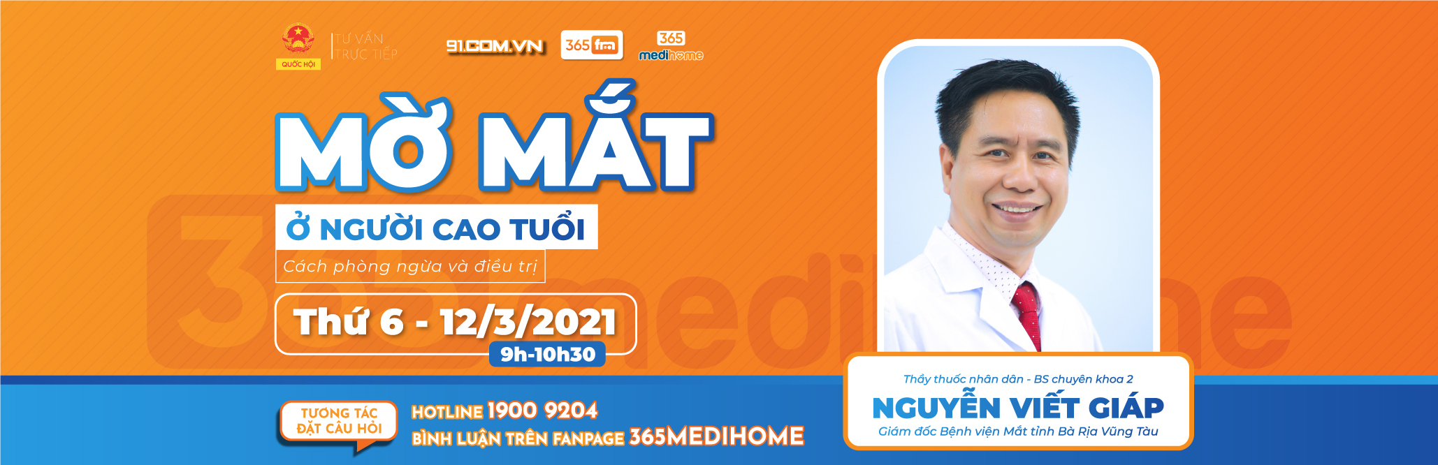 Sự thay đổi thị lực và các nguy cơ mắc bệnh về mắt ở người cao tuổi là điều tất yếu, để chăm sóc mắt đúng cách, trong chương trình tư vấn sức khỏe trực tiếp của BS chuyên khoa 2, Thầy thuốc nhân dân – NGUYỄN VIẾT GIÁP, Giám đốc Bệnh viện Mắt tỉnh Bà Rịa Vũng Tàu – Thành viên của Trung tâm nghiên cứu phát triển công nghệ y tế từ xa Việt Nam, sẽ giải đáp mọi thắc mắc cho các quý khán thính giả xoay quanh chủ đề “MỜ MẮT Ở NGƯỜI CAO TUỔI – CÁCH PHÒNG NGỪA VÀ ĐIỀU TRỊ”, chương trình được phát sóng vào hồi 09 – 10h30 thứ 6 ngày 12/03/2021.