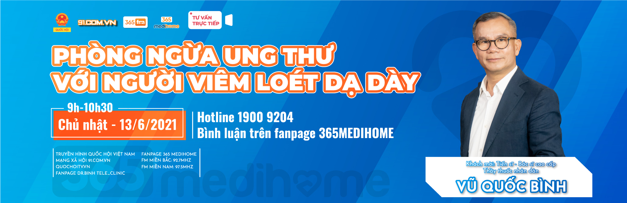 Để kết nối trực tuyến với BS VŨ QUỐC BÌNH trên sóng truyền hình, mời quý khán thính giả gọi về cho chúng tôi qua hotline 19009204 nhánh 1, hoặc gửi câu hỏi cho bác sĩ qua fanpage Phòng khám đa khoa online 365 Medihome.
