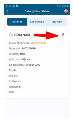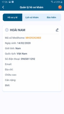 Nhấn vào “Hồ sơ y tế” để xem thông tin chi tiết hồ sơ.