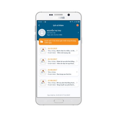 Để xem chi tiết kết quả khám của từng ngày, người dùng nhấn vào chính ngày đó và có thế xem thông tin chi tiết hồ sơ, phiếu chẩn đoán hình ảnh, kết quả xét nghiệm, đơn thuốc.