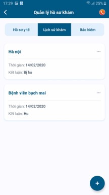 Để thêm lịch sử khám, người dùng nhấn vào nút sẽ hiển thị lên màn hình thêm mới