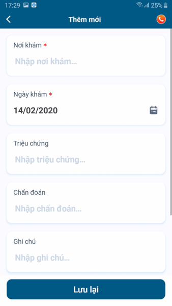 Nhập các thông tin trong “Thêm lịch sử khám” và nhấn “Lưu lại”