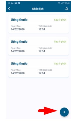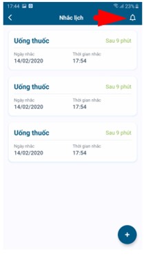 Để thêm mới lịch nhắc, người dùng nhấn vào nút thêm mới