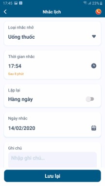 Nhập các thông tin trong “Thêm nhắc lịch” và nhấn nút “Lưu lại”