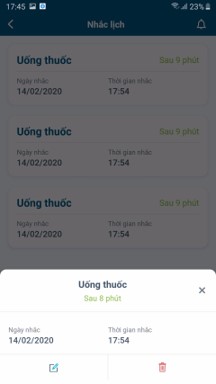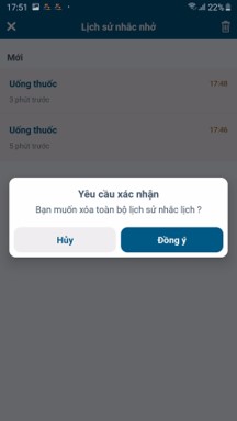 Để xóa lịch nhắc, người dùng nhấn vào lịch nhắc cần xóa và nhấn nút